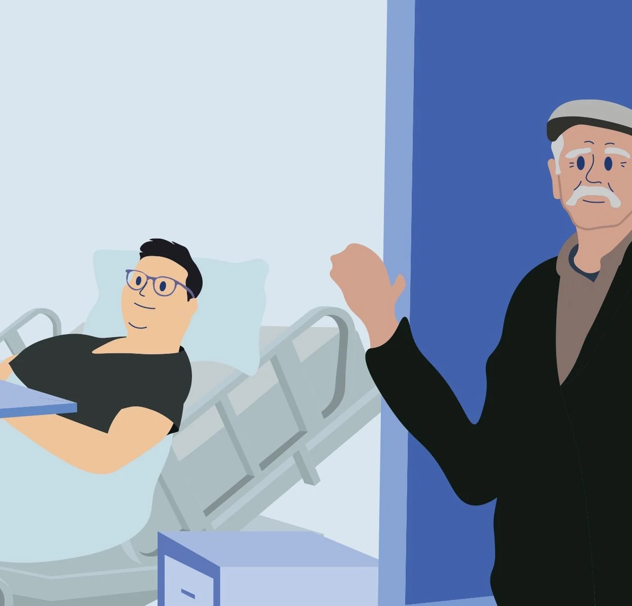 The other day, one of the staff showed me how to take some of the people featured in the corridor AR and have them appear in the therapy spaces [2]. It’s pretty cool to look at how they were going [10, 14]. But, nothing beats the time I get to spend with other survivors – especially when we get to compare notes on our therapists. I think my [carer] also really appreciates getting to meet other carers and families around the facility. It must be really reassuring for them to have someone they can talk to who really understands what they are going through [9].